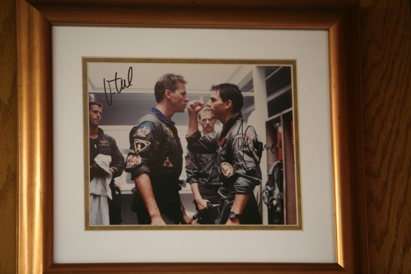 左:壁に映画『トップガン』のトム・クルーズと、ヴァル・キルマーのサイン入り写真が。やはりこの世界観か!