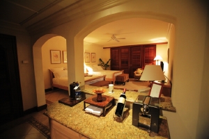 ワン&オンリー ル・サンジェランへ到着したころには、もうすぐ日付が変わろうとしていた。成田空港を出発してから、すでに14時間あまりが過ぎている。初めての国を訪れた興奮は精神的な昂揚を誘うが、身体は正直だ。香港からモーリシャスまでおよそ10時間のフライトに絶えきった膝や腰が、さすがにぐずりはじめている。