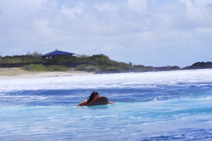 沖合を見つめながら、波待ちをするしかない。5分に1本程度しか、波が立たない。それも、ひどく小さめのサイズだ。デイヴィッドのアドバイスに従って左右にポイントを変えながら、國分は波を求めていった。