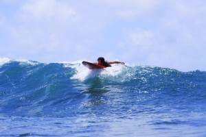 タマリンでのサーフィンは、すでに7時間になろうとしている。パドリングのスピードが落ちてしまい、波に追いつけなくなってきた。バランスを取り損ねて、ワイプアウトしてしまう。腕にはズッシリと重さがあり、ふくらはぎや太股の張りも無視できなくなった。