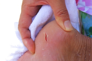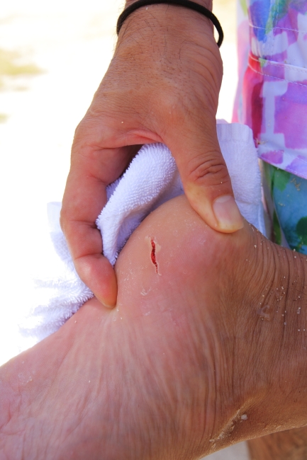 足の裏を5センチほどカットしてしまったのだ。深刻なのは、傷の長さではなく深さだった。1センチほどの深さで、傷口がパックリと割れてしまっている。