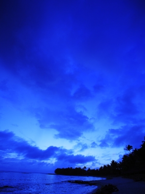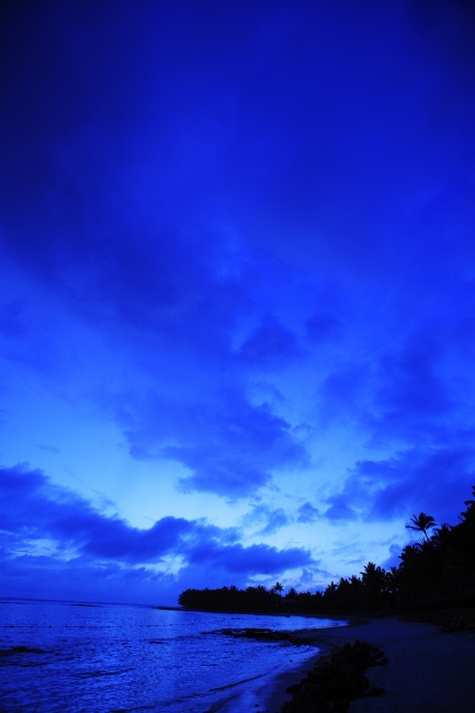 日の出前の一瞬の奇跡。空と海が幻想的なブルーで染まった。この空が赤に染まるまでの12時間強。國分の長い一日が始まった。