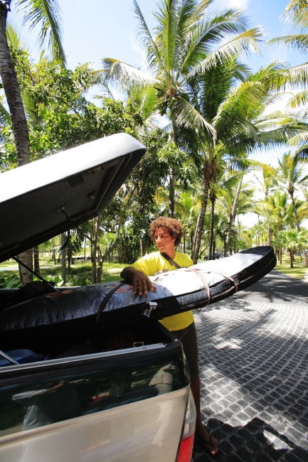 デイヴィッドのハイラックスに乗り込んだ國分は、ル・サンジェランから車で20分ほどのプライベートビーチをチェックし、そこからさらに1時間近く車を飛ばしてタマリンヘ向かった。ビーチフロントのリゾートホテルが立ち並ぶこのエリアは、ローカルたちにとって格好のサーフスポットである。