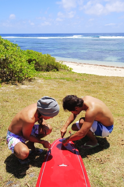 サーフィン歴20年の國分だが、ここ数年は年に2、3回しかウェットスーツを着る機会がない。しかも、直近のサーフィンで若手スタッフにボードをプレゼントしてしまったため、モーリシャスに持参した赤いロングボードは今回が初めてのライディングとなる。耐久サーフィンに挑む前に、新しいボードのフィーリングを確かめておきたかった。モーリシャスの波が、どのようなものなのかも。