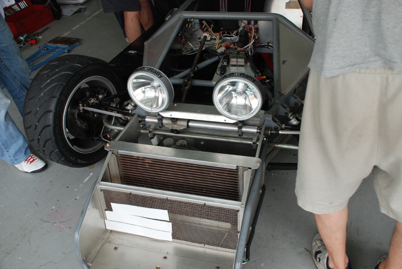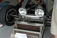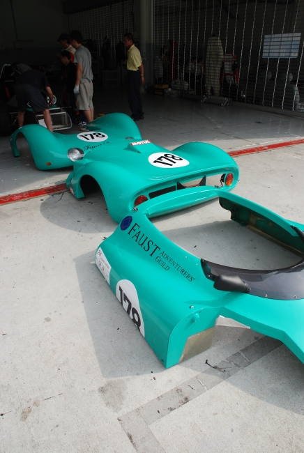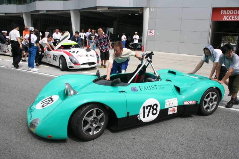 F ちょうど、コンテナ積みする4〜5日前でしたか、監督の志村さんから土曜日に電話がかかってきて、「月曜、空いている?」と言われて、「えっ?」と応えたら、「シェイクダウンするよ」と・・・。慌てて準備したのを覚えています。組みあがったばかりのマシンで富士を走ったんですが、ギヤ比が合ってなくて、その時はレーシングカーとして走ってくれなかったですね。本番レースが間近で、マシンは主催者の用意したコンテナで現地に運ぶんですが、それまで時間がない。そのままの状態でコンテナに載せて、あとは現地合わせということになりました。