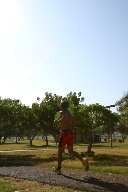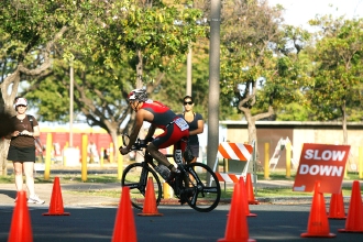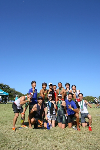 Faust(以下F) クラゲが発生したおかげで、急遽デュアスロンになってしまったのは、すこし残念でしたね。ただ、デュアスロンは初めての経験だったんですけれど、これはこれで面白かったですね。ハワイの大会は、デュアスロンだろうがトライアスロンだろうが、美しい青い海を泳ぎ、この青い空の下、爽やかな風を感じながらバイクを漕ぎ、走るから、ホントに楽しい!と改めて実感しましたよ。