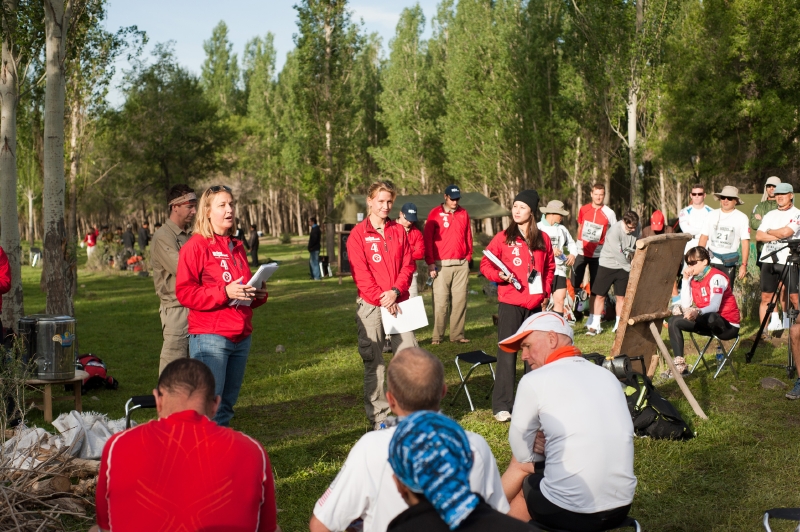 スタート30分前、選手全員に集合がかかる。これから毎日行われることになる、朝のブリーフィングだ。砂漠のマラソンは、一日でおよそ30〜40kmの距離を走る。その間にチェックポイントが2カ所。このブリーフィングで、最初のチェックポイントまではイージーだとか、このあたりは道が分かれていて迷いやすいといった簡単な情報が伝えられる。選手個々にマップが渡されるわけではないので、コースの全容を見ることができるのはこの時だけである。 赤坂は、不慣れな英語での説明を聞き洩らさないように集中し、コースの全容を頭に叩き込んだ。