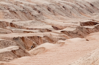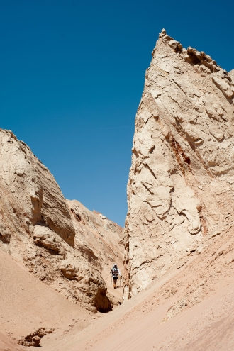 そこは、もともと川が流れていた跡と思われ、左右は切り立ち、狭いところで幅50cmほどの峡谷を走らねばならない。大地が割れたかのような崖の間を、クネクネと縫うように進む。それが細かく分岐しながら、20kmあまりも延々と続いていた。
