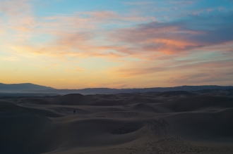 地平線から顔を出す太陽を眺めながら、荒涼とした大地を突き進む。