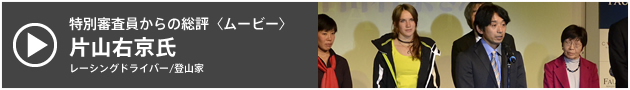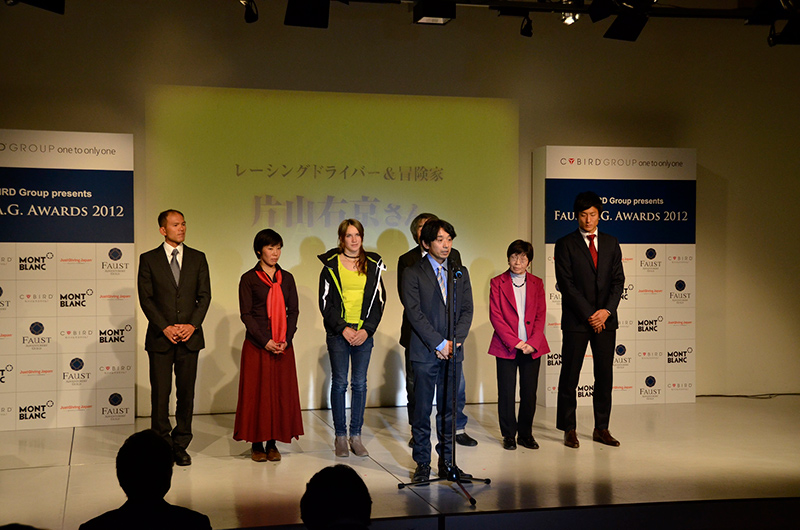 最後に、ファウストA.G.アワード2012の特別審査員であり、受賞者へのプレゼンターも務めていただいた片山右京氏が登壇。「これだけ時代が加速して過ぎていくなかで、冒険の求められるハードルは高くなっている。クリエイティビティが求められたり、世の中の常識と戦ったりしなければならない。彼らがトライする冒険によって勇気をもらえていることに、お礼を言いたい」と総評を述べ、各受賞者への謝意という形で彼らの活動をあらためて称えた。