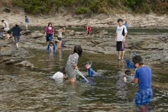 そして10月初めの某日、団体バスに揺られた子どもたちが鴨川に到着。昨年と同じ顔ぶれもあれば、新たに加わる子どもたちも。いずれも目を輝かせて、降り立った。