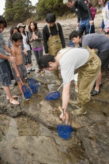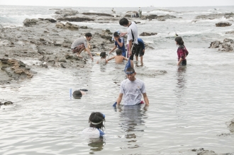 「今年は台風が過ぎた後だから、昨年よりも海の水は冷たいけれど、熱帯魚は見つけやすいんだよ」