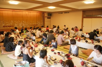 魚を集め終えてからは、鴨川の温泉宿「宿中屋」へ。ここで温泉に入り、食事を食べる。