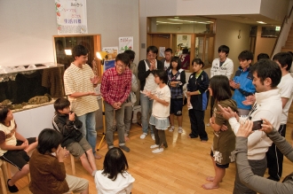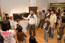 と、最年長の高校一年生のトシキくんが挨拶。今回は、生まれて初めて海にやってきたという小学校一年生の男の子も参加している。