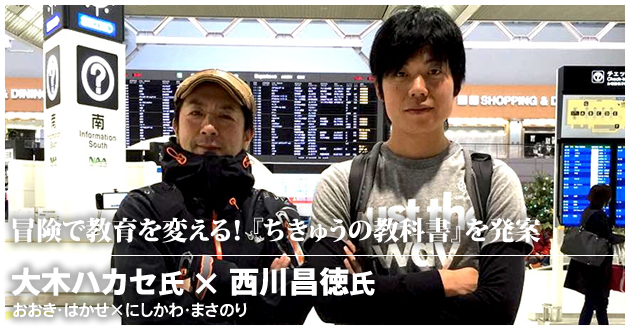 アウトドアの技術で生き抜くチカラを世に啓蒙しているアウトドアマン・大木ハカセ氏と、自転車で世界を旅するサイクリスト・西川昌徳氏の二人は、「冒険で教育を変える!」ことをコンセプトに掲げ、『ちきゅうの教科書』プロジェクトを発足。日本の未来を担う子供たちの“学習意欲”の変革をもたらすべく、教育現場に「冒険、探検」のプロフェッショナルたちを講師として送り、継続的な授業を実施する活動を開始した。きっかけは、福島の小学校で非常勤講師として教鞭をふるう西川氏の活動。