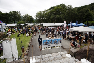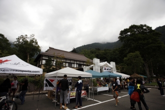 大会事務局が置かれた環湖荘前では、メイン会場の設営が行なわれていた。スタートとゴールのゲートや、仮設テントが設置されていく。工具を持った男性スタッフが慌ただしい。