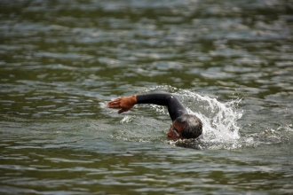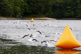 トライアスロンで泳ぐ海と違って、湖は淡水のため浮力は圧倒的に少なく、そのため海より難しいという選手もいる。