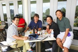 彼らの師匠であり、テクニカルサポ-トをするマ-ク川島は、厳しい表情で、そう言った。昨年は、天候が大荒れし、雨、強い北風、濡れた芝との戦いになり、3人はラフなコンディションに苦しめられた。だが、今回は予選ラウンドではめずらしく快晴となり、気温がグングンと上がっていく。午前8時には、気温25度になり、無風の中、刺すような日差しがグリ-ンを照らしている。