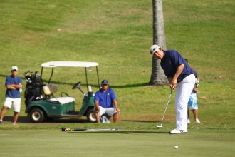 「何を今さらと思うけど、3回目の挑戦にして、ようやく芝と分かり合えた感じがする。ここのグリーンは根がパ-ルハ-バ-に向かって生えて、風で逆目になっているんだけど、そのことを今まですごく気にしていた。でも、意外と切れないし、素直に打っていけば入る。そのことに途中で気が付いたんです」