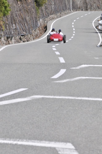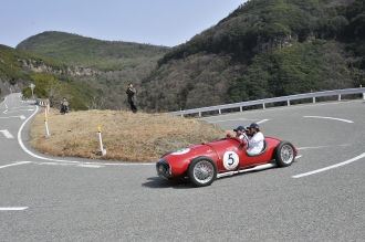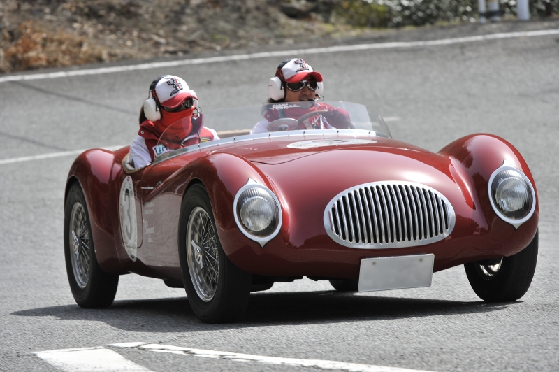 前オーナーご夫妻の思い出が詰まった1949年式O.S.C.A MT4 1100 Siluroを駆り、ヒルクライムでコーナーを攻める武田さん。