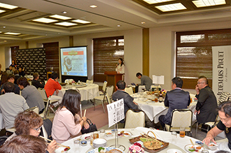 飲み物も料理も進み、それぞれのプレーを報告し合い、労い合いながら、笑い声とともに楽しげな会話が広がって行く。司会が進行する中、スコアの集計が終わるとパーティは表彰へと移った。参加賞からブービー賞、注目のドラニア賞、ニアピン賞、そして順位上位者の名前が読み上げられていく。その都度その都度、名物である豪華な副賞の数々が続々と贈られていくと、喜びとひやかしの声で会場は盛り上がっていった。