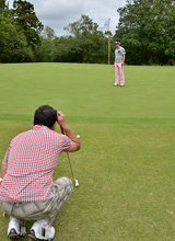 2時を回るころ、続々とそれぞれがプレーを終え、クラブハウスへと引き上げはじめた。お互いのプレーやスコアを讃えながら、お風呂で疲れと汗を洗い流し、ウェイティングルームで話に花を咲かしている。その一角では、オーデマ ピゲのオーナーに、愛用のウオッチと共に記念撮影をするサービスも行われた。