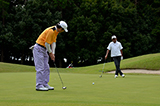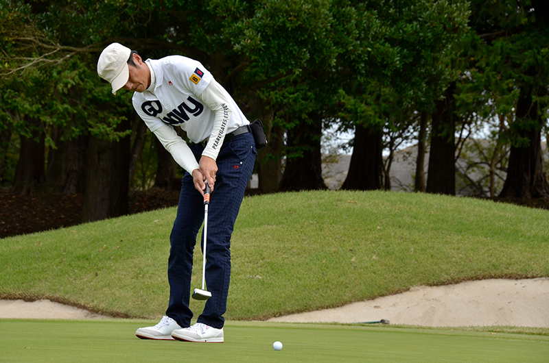 事前の予報では、大型の台風が近づきつつあり天候が気がかりだったが、当日は台風上陸の直前となり、やや風はあったものの、晴れ間ものぞくゴルフ日よりとなった。