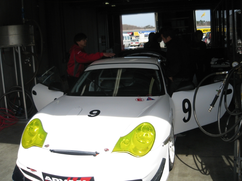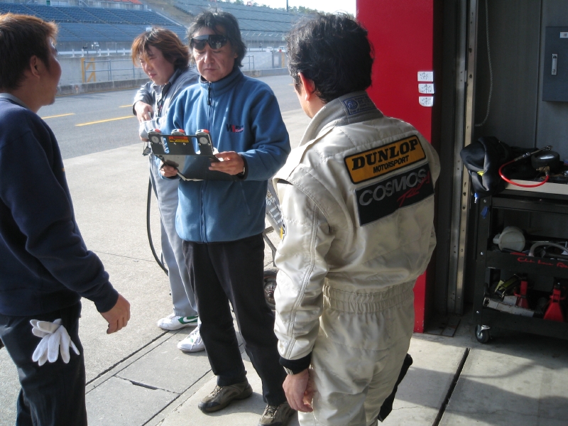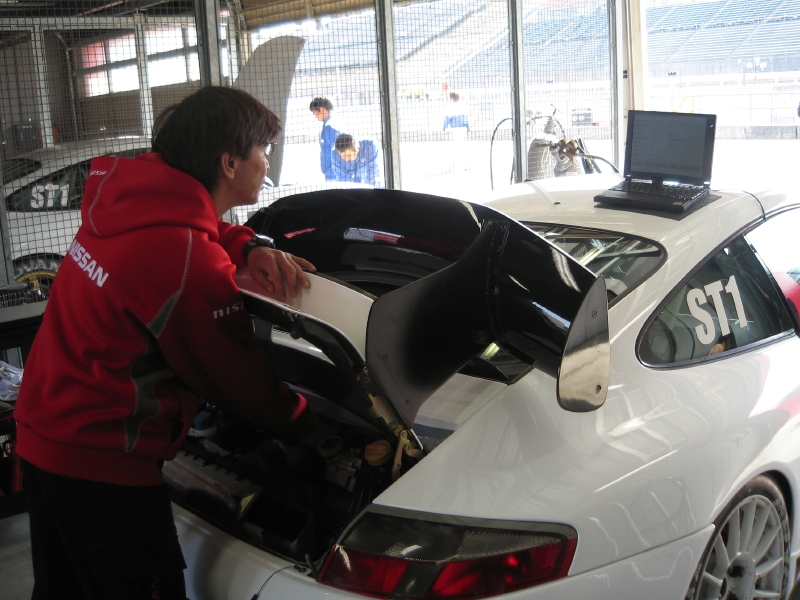 「いや、あれは、ちょっと恥ずかしかった。クルマが一台しかないので、大事に走ろうとして緊張した……」。アグレッシブな堀らしからぬスタート。3人のド ライバーがバトンをつなげていくチーム走行ということ、本戦前のテストで“もしも”のことがあってはいけないという気持ち、この2つがエンストを起こさせ た。  ドライバーチェンジ後の安藤も、やはり思うほどタイムが出なかった。同じようなプレッシャーを感じていたのだ。マシンセッティングを変更しながら、何度 もタイムアタックを繰り返す。終了直前でわずかながらタイムが縮んだ。それでも、プロレーサーが参戦している他のチームから比べるとその差は歴然であ る。