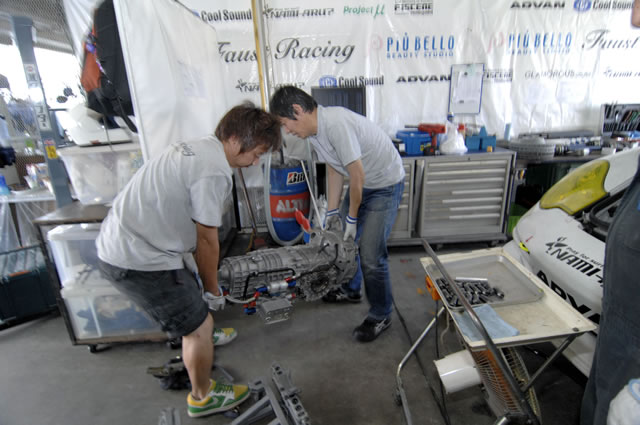 午前中の2回の専有走行では、ともに41秒台前半をマーク。明日の予選に向けては上々のてごたえだ。ラップタイムは総合9~10番手だが、まだまだ時計は詰められるはず。ただ、3速シフトが渋く、入りにくいことから、午後の最終セッション前までにミッションを積み替えることになった。