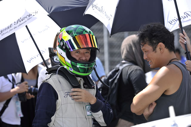 この岡山では、マシンだけでなく、人間の方も調子がいいようだ。レーシングスーツを脱いだ堀の身体は、日焼けしているだけでなく相当に締まっていた。聞けば、体脂肪を8.5%に、体重を12kg落としたとのこと、シーズン初戦のボテッとしていたシルエットは微塵もない。趣味にしているウエイクボードと食事療法で、この日のために身を削ったようだ。サーキットへの対応も、ホンダS2000をネットで購入し岡山に持ち込んだ。前日にはポルシェでの走行も含め3.5時間走り抜いている。身体は悲鳴を上げたらしいが、それが自信となっていることは確かだ。