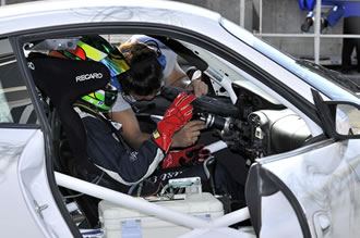 足回りのセッティングを変え、ミッションを載せ替えた第3セッション。ところが、思うようにタイムが伸びない。どうやら5速が吹けないらしい。すぐに、原因は判明、メカニックが5速と6速を組み間違えたのだ。ドライブする上では、シフトチェンジをするゲートの位置が違うだけなのだが、シフト回数の多いレースでは、ドライバーに与える負担は大きいものとなる。身体に染み付いているシフト操作と違うイレギュラーな操作を強いられるのだ。