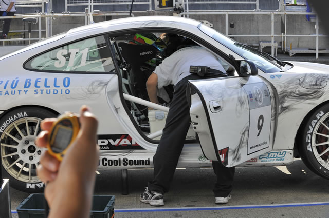「予選でST-2クラスに負けるにはいかない。1分40秒は切る」と、堀はそう言い残しマシンに乗り込んだ。Aドライバーのスタートは朝8時30分。堀はピット出口で、誰よりも早くコースインを待つ。