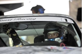 予選2番手は佐藤。ラリーストである佐藤の負けず嫌いもハンパではない。ピットでは笑顔の絶えない佐藤だがクルマに乗れば別人、3周目には自己ベストの1分40秒424を出す。予選はAドライバー+Bドライバーのタイムで決まるため、順位はクラス6位、総合6位。トップカテゴリーのST-1クラスのマシンとして、クラス下のマシンを1秒以上離し、きっちり押さえることができた。
