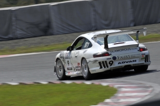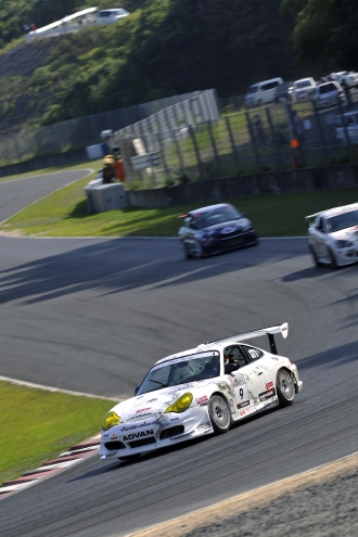 堀の予選タイムはそのアクシデントのあった次週がベストラップで1分40秒267。以降の3周を40秒台~41秒台でまとめた。同じポルシェ996を駆る他チームのプロドライバーから、わずか1秒落ちという堂々としたタイム。しかも996とはいっても相手は、プラスチック窓、カーボンドアパネルと軽量化の行き届いたマシン。重量ハンデを考えればなおさらのことだ。