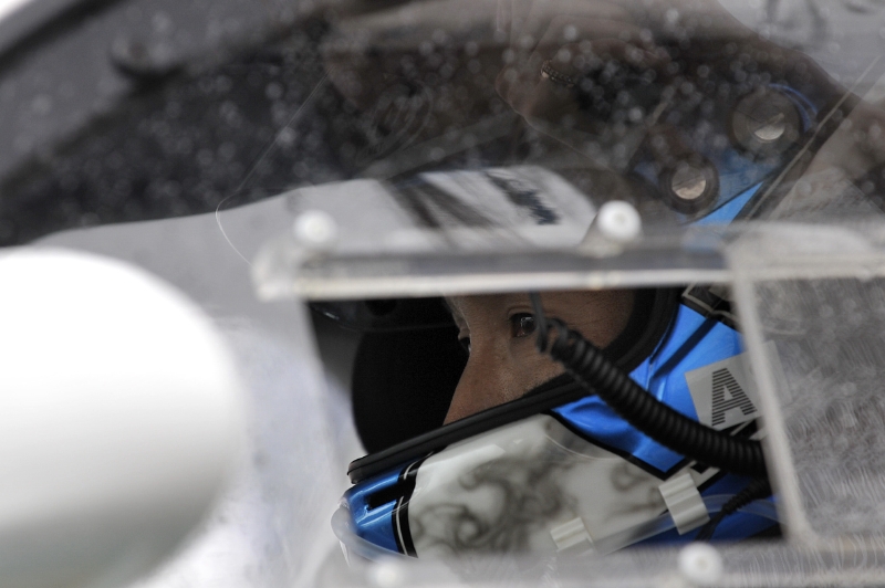 すべりやすい路面にあり余るパワー、氷の上を走っているようなもの。アクセルを開ければリアが滑り出し、カウンターを当てねばならない。どう工夫してラインを取っても、短いアタックの中では答えは見つからない。SUGOは雨になると他のサーキットに比べグリップのレベルが低く、そのことも追い打ちをかける。初めてのマシンで、しかも経験のないハイテク装備のレーシングカー。リスクマージンをどこまで取っていいかわからない。