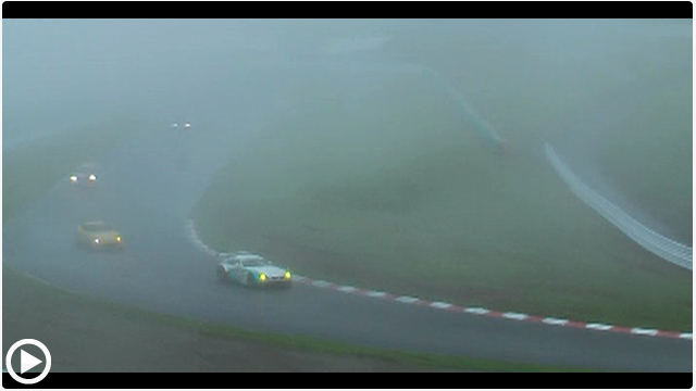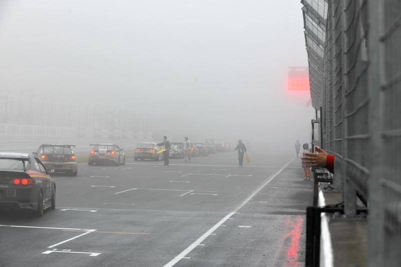 3時間耐久レースの残り40分。佐藤が10数周したところで雨脚が突然強くなり、スピン、コースアウトする車が続出、濃霧と雨のため再びセーフティーカーが導入された。そのまま20分間、セーフティーカー先導でラップを重ね、残り20分を残して赤旗中断、そのまま終了した。最終順位は総合12位となった。