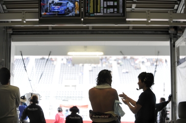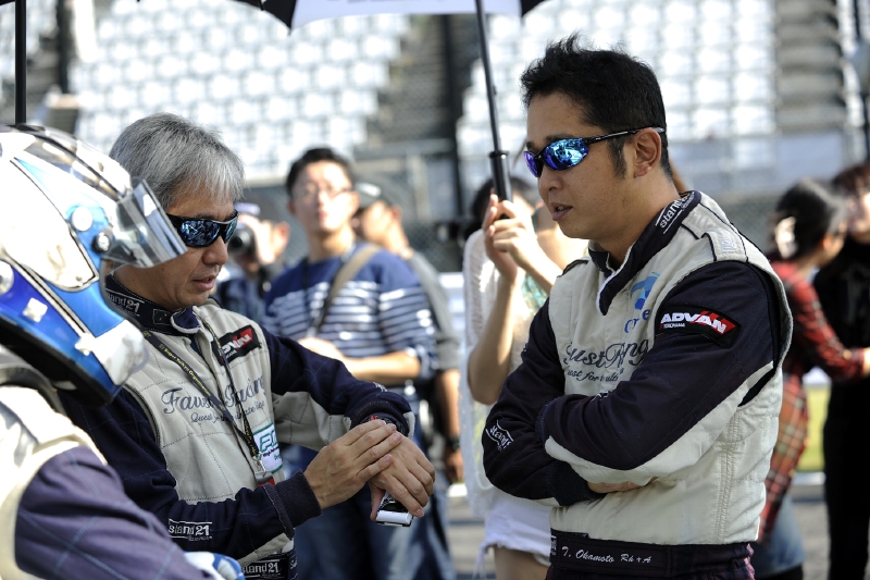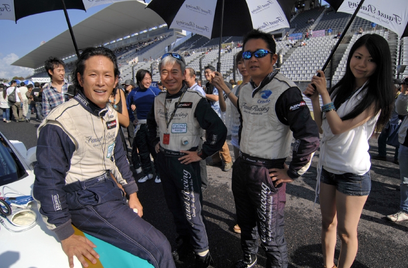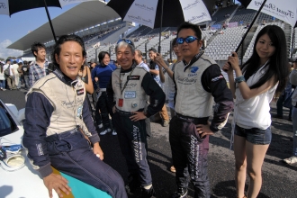 WTCC併催のためタイムスケジュールはタイトだ。あわただしくスタート前30分を迎える。ドライバー堀がマシンに乗り、コースを1周し、スターティンググリッドに並ぶ。レースクイーンやメカニック、関係者がマシンを中心に取り囲む。見知った他チームのドライバーとも、ここでしばしの歓談。