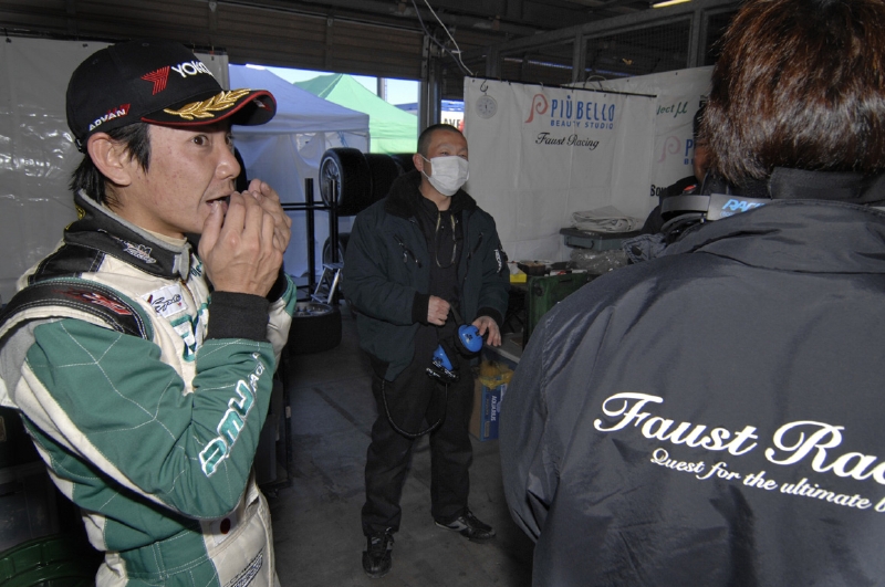 Faust Racing Team(以下Faust RT)は、シーズン当初より佐藤/堀/岡本の3ドライバーで戦っていたが、岡本のスケジュールが調整がつかず、最終戦はFaust RTのドライバーコーチを務めるプロジェクトミューの開発ドライバー山野直也が参戦することになった。昨年はFaust.RTでスーパー耐久を3戦走っているが、その速さは誰もが認めるところ。近年はJAFジムカーナPN3クラス2009年チャンピオン、2010、2011シーズン2位と腕を振るっている。