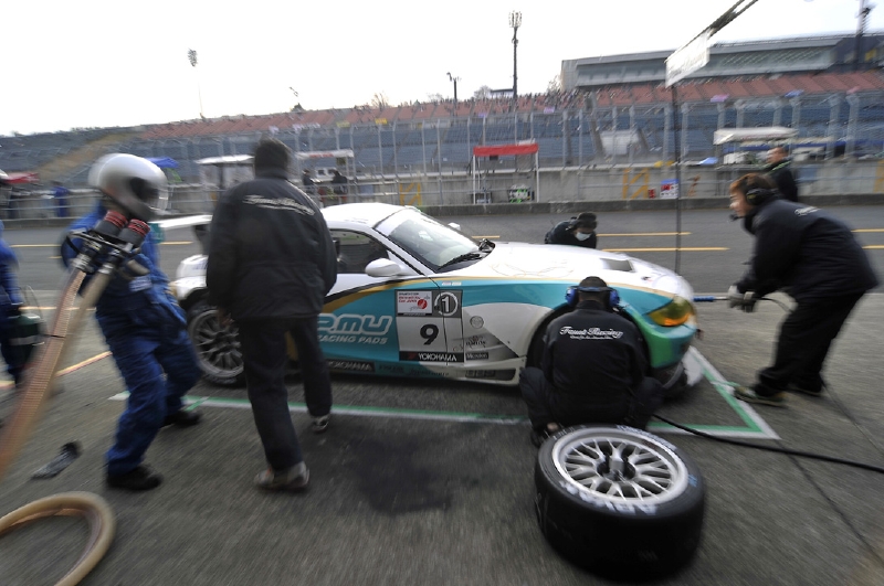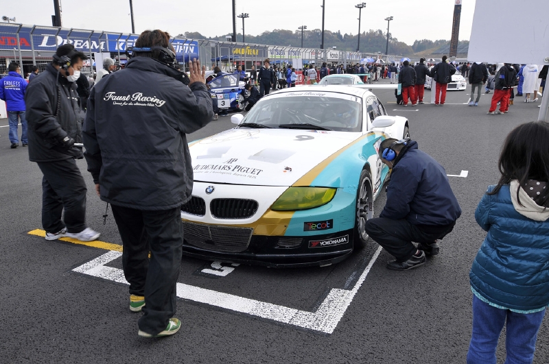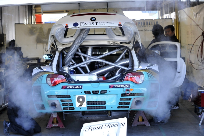 11月26日(土)、早朝から霜が降りる中、予選開始となる8時を過ぎても気温は4℃。路面温度もまったく上がらない。金曜日のフリー走行中にオーバーヒート症状が出たFaust RTのBMW Z4は、昨晩、予備エンジンに換装され、予選のスタートを待っている。