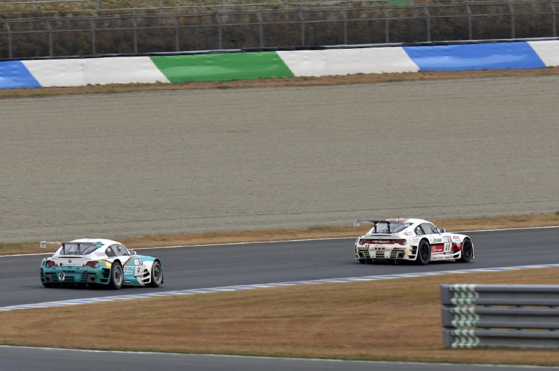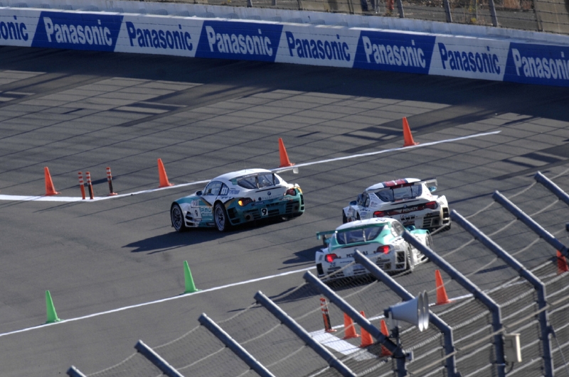 BMW Z4による争いはポールポジションの#28以下、#1、#9(Faust RT)、#11の4台。前を行く#28と#1のペトロナスには離されないよう、後ろの#11には抜かれないようにしなければいけない。トップを行く2台のペトロナスはシリーズチャンプがかかっているし、#11も攻めてくるのは明白だ。