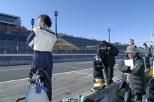 8時15分定刻、予選スタート。まずはAドライバーの佐藤がアタックに入るが、寒さの中、他チーム同様なかなかタイムが上がらない。残り数周になりコースレコードが更新されるコンディションになると、佐藤もシケインのパイロンに接触しながらアグレッシブな走りをみせ始めた。区間ベスト、ベストでラップを上げ、最終アタックで51秒356を掲示。Aドライバー3位タイムで予選を終えた。