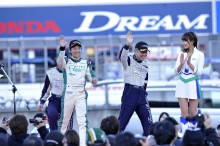 一方、ピット内ではトップに立った時点から騒然とし始めた。ゴール後は全員で山野のお迎えだ。前レースにも増しての興奮状態が続く。抜群のピットタイミングがあったとはいえ、パーフェクトに仕上げたメカニックとドライバーのがんばりで手にした最高の勝利。初優勝は、珍事でも番狂わせでもなく継続と努力の結果であることはチーム全員が知っていた。表彰台では、もてぎ恒例の子供連れファミリーからも目の前で暖かい祝福を受け、満面の笑顔で応えた佐藤/堀/山野だった。