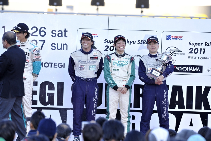 スーパー耐久2011シーズン第5戦「もてぎオーバル」第1レース、Faust Racing Teamは参戦4年、16戦目でチーム初表彰台となる2位を獲得。続く第2レースでは先頭でチェッカーを受け、初優勝を果たした。翌日開催された最終戦「もてぎ300km」まで、シーズンラストランをレポートする。