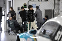 テストデイは3月11日で、東京は早朝から雪模様。富士スピードウェイのある小山町は静岡県の北東の端で、富士山へと連なるため標高も高い。不安定な天気はレース本番でも関係者を悩ますが、この日も例外ではなかった。テストデイとしての走行時間枠は午後からだが、午前中のスポーツ走行時間枠を使ったセッティングは雨の中となってしまった。