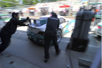 早朝8時45分から行われた予選、Aドライバーを務めたのは堀。Faust RTのピット位置が最終コーナーに近いため、コースインが遅くなる場所。序盤でクリアラップを取るのに苦労するかもしれない。