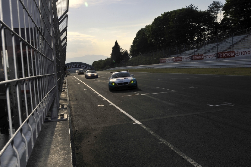 58周目、#3フェアレディZが最後のピットイン。ドライバー交代と給油、タイヤ交換を行う。一時的に#9 Faust RT BMWはトップに立つが、コースに戻った#3が後方10秒に迫る。タイヤのフレッシュな#3は、堀を追い上げにかかるものの、その差4秒を保ったまま堀は千代へとつないでいく。
