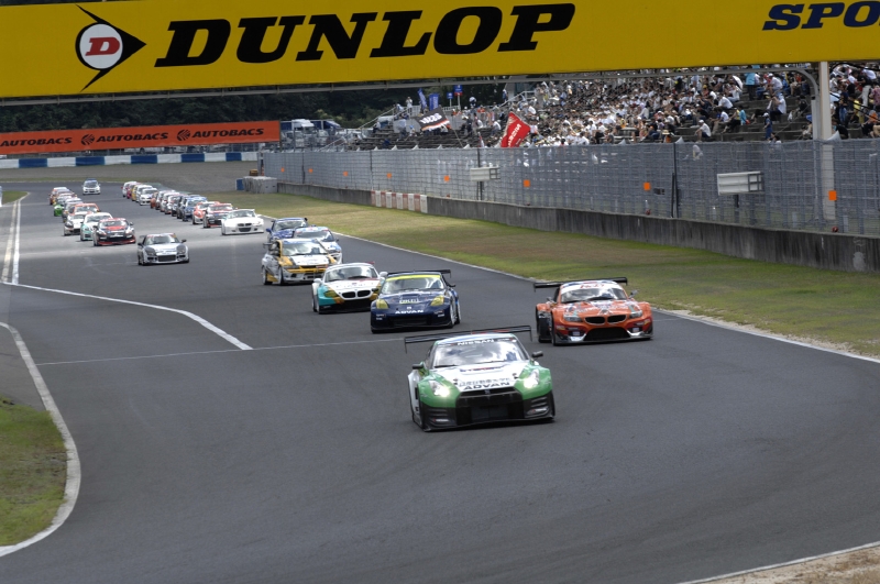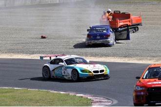 このため初周からいきなりのセーフティーカー(以下SC)導入となった。前戦のSUGOと同じ展開だ。前日から、「勝ちにいく」と公言していた#3フェアレディZは、次周にピットイン、ドライバーチェンジだ。順位はいったん落とすが、義務付けられている2回のドライバーチェンジの1回をこなすことでタイム・アドバンテージを得る作戦だ。