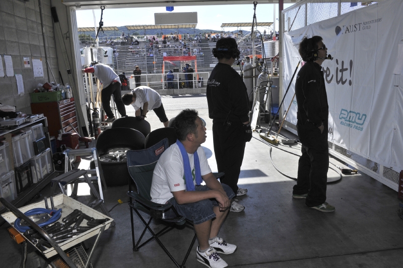 金曜日、ドライコンディションで行われたフリー走行では、3名のドライバーがそれぞれ1分40秒台を出し、好調さをアピール。昨年のラップや他チームとの比較でも、明日の予選は勝負になるはず。久々で心配された佐藤も、「思ったより走れている、意外に忘れていない」と、スタッフを安心させてくれる。ニュータイヤでの予選は、40秒を切るだろうし、できれば38秒台でポールを争いたいところだ。