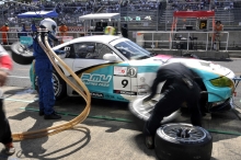 8月26日(日)、決勝当日朝のフリー走行。8時30分だというのにすでに気温は28℃。午後からの3時間耐久レース決勝が、マシンにもドライバーにも過酷なものになるのは確実だ。
