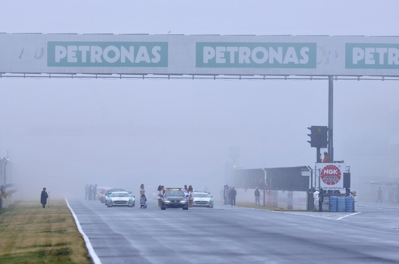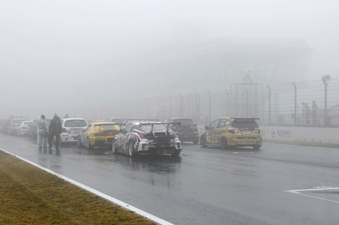 11月11日(日)、9時40分から予定されていた決勝前のフリー走行だったが、ホームストレート上は1コーナーも最終コーナーも濃霧で見えない状況。10分の延期がアナウンスされたものの、全く天候の回復気配がなく、フリー走行は決勝レース直前にシフトされた。このため午前中はテントでのミーティングに。